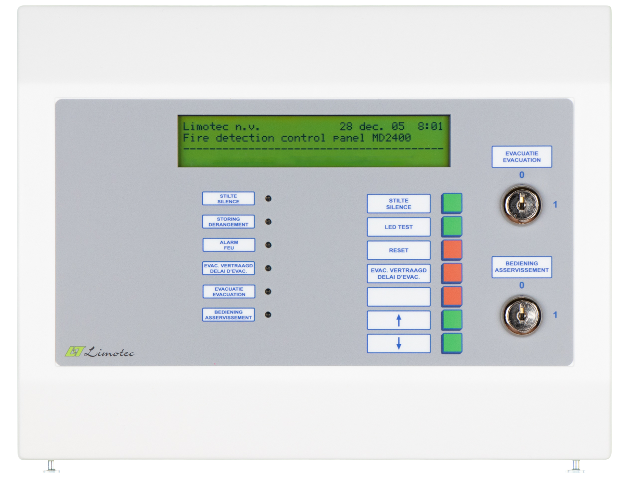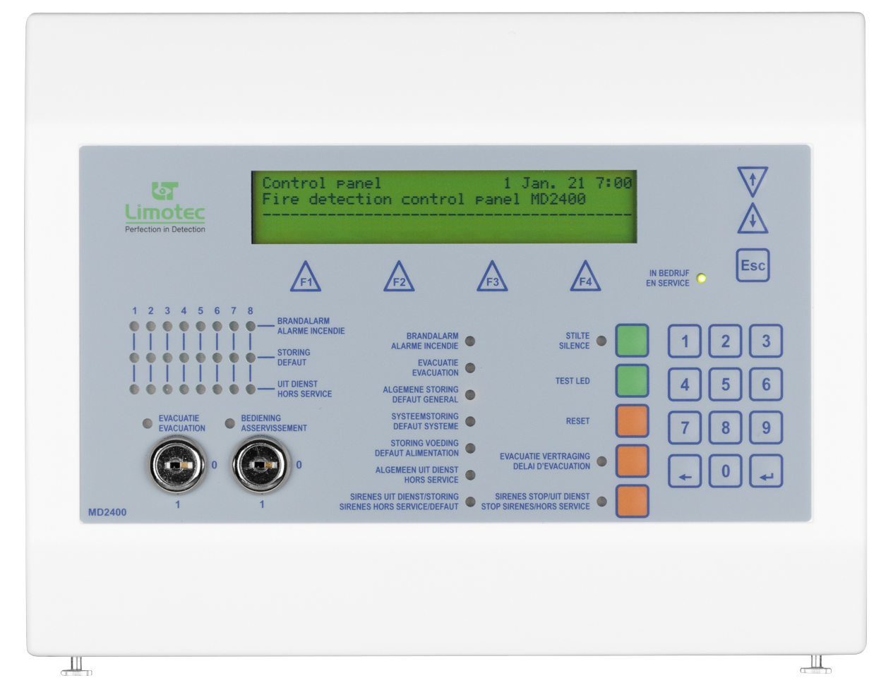De nieuwe MD2400 LCD bedieningsconsole met aanraakscherm kan via de configuratiesoftware zowel als bedieningsconsole met de volledige functionaliteit van het systeem of als herhaalbord met beperkte bedieningsmogelijkheden worden ingesteld.